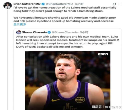 之前東契奇那腿筋二級(jí)拉傷,可把大家急壞了。他和湖人隊(duì)醫(yī)還有自己的醫(yī)療團(tuán)隊(duì)一番“頭腦風(fēng)暴”后,決定回歐洲“尋醫(yī)問(wèn)藥”。這決定一出來(lái),可就像在平靜湖面扔了顆大石頭,激起千層浪??!美國(guó)那些運(yùn)動(dòng)醫(yī)學(xué)專家們,一個(gè)個(gè)跳出來(lái)表示“不答應(yīng)”,覺(jué)得歐洲的醫(yī)療技術(shù)哪能比得上美國(guó)呀,還說(shuō)歐洲那所謂的先進(jìn)注射治療,根本就沒(méi)在權(quán)威文獻(xiàn)里“露過(guò)臉”。還有人“酸溜溜”地質(zhì)問(wèn):“同樣都是肌肉二級(jí)拉傷,同樣都是湖人球員,憑啥里夫斯就留在美國(guó)治療呢?”