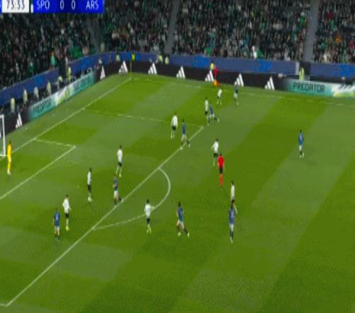 第6分鐘,葡萄牙體育后場送出長傳,阿勞霍前插拿球突入禁區(qū)內(nèi)單刀爆射,球擊中橫梁彈出,阿森納逃過一劫。