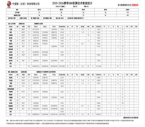 2025-2026賽季CBA常規(guī)賽第三十六輪,遼寧本鋼對陣福建晉江文旅的比賽于7日晚在遼寧體育館進行,遼寧本鋼隊最終以112:103擊敗福建晉江文旅。