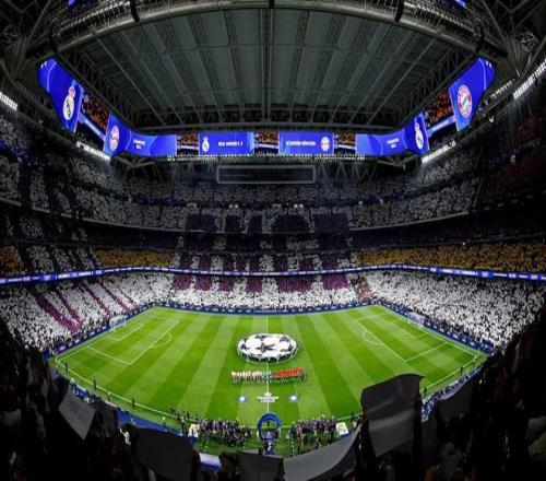 北京時間4月8日歐洲冠軍聯(lián)賽1/4決賽首回合,皇家馬德里坐鎮(zhèn)主場伯納烏球場迎來與拜仁慕尼黑的“歐洲德比”。本場比賽前,伯納烏球場也展示了一幅全景式的拼接式Tifo,現(xiàn)場球迷手持色塊拼接出了皇馬隊名和皇馬隊徽。