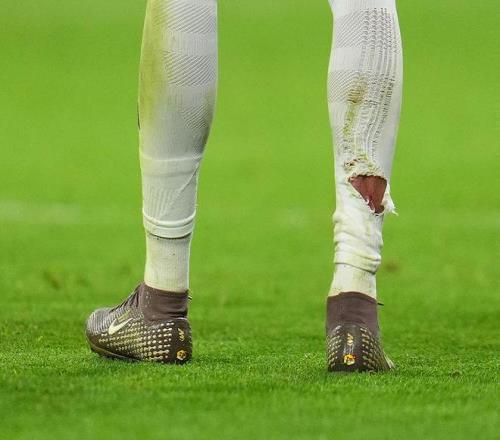 盡管VAR介入回看,這次犯規(guī)最終只被當(dāng)值主裁邁克爾-奧利弗判為黃牌。而賽后照片顯示,姆巴佩小腿襪被踩破露出血痕。