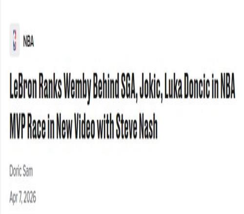 不過,詹姆斯隨后表示,在今年的MVP角逐中,他會把雷霆球星亞歷山大、掘金球星約基奇以及湖人隊友東契奇排在文班亞馬之前。