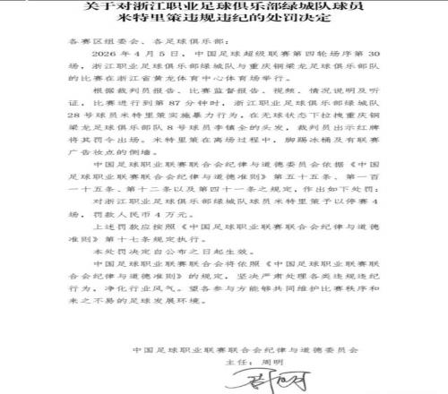 重慶銅梁龍看來真的要載入史冊了。中超上輪的最大沖突和爭議,李鎮(zhèn)全和米特里策的事件還在發(fā)酵。足協(xié)不僅對米特里策進(jìn)行4場追加處罰,而且對重慶銅梁龍助理教練杜宇辱罵裁判開出了停賽6場的重磅罰單,之前也傳出李鎮(zhèn)全賽場罵人的行為同樣會被追加2場處罰。