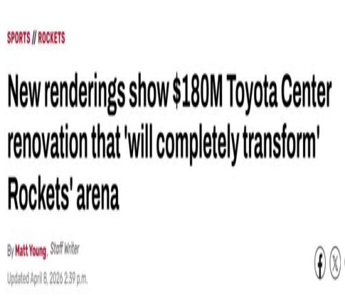 北京時(shí)間4月9日,火箭隊(duì)的主場豐田中心將于今年夏天啟動(dòng)1.8億美元的翻新改造工程,其中包括新建一座近2萬平方英尺的玻璃幕墻中庭,打造一個(gè)帶頂棚的戶外社交空間,這將徹底改變這座市中心球館的正門外觀。