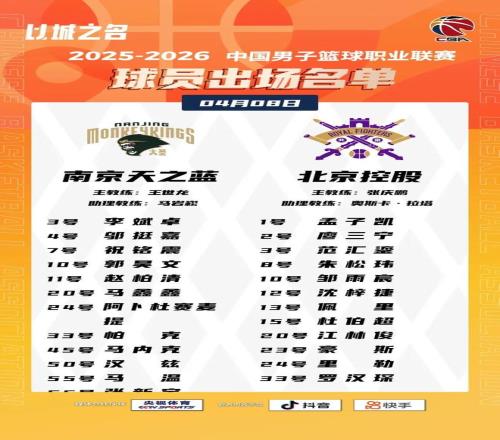 根據(jù)官方比賽名單,J.Cole依舊無緣本場比賽,南京隊此前的四名外援則悉數(shù)出戰(zhàn)。