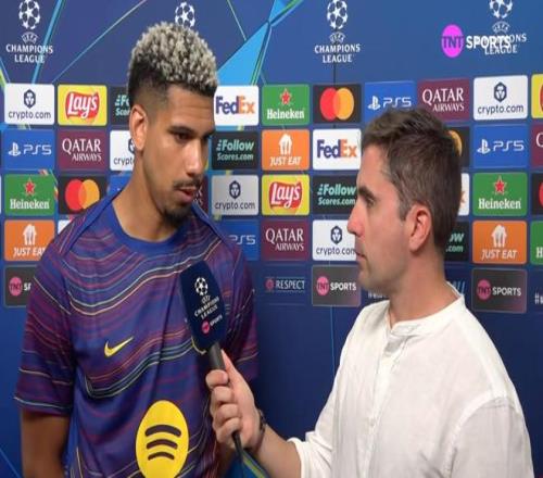 歐冠1/4決賽首回合,巴薩主場(chǎng)0-2輸給馬競(jìng),巴薩后衛(wèi)阿勞霍賽后接受了TNT體育巴西頻道的采訪。