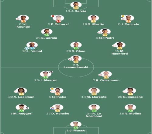 就此比賽走向了西蒙尼控制,巴薩雖然很想扳回一分,可是眾志成城下馬競沒給機會。亞馬爾及坎塞洛們幾乎是把邊路突出了火星,奈何,馬競防守實在是太好了,就此90分鐘,馬競2-0勝的。