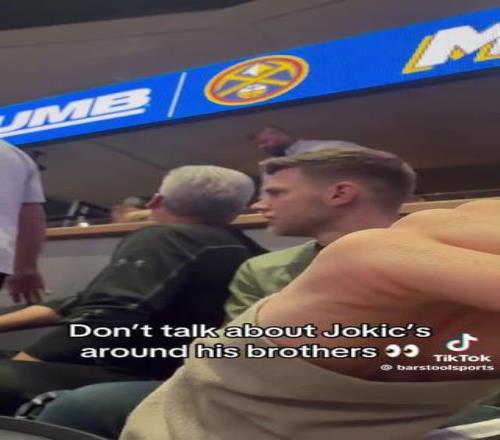 掘金主場(chǎng)打國(guó)王,場(chǎng)邊鏡頭掃到約基奇的大哥Strahinja對(duì)著觀眾席咆哮。有球迷拍到他在包廂里指著下方罵罵咧咧,疑似回應(yīng)有人對(duì)弟弟垃圾話。這畫面在Reddit上瘋傳,評(píng)論區(qū)第一條高贊是:"這人每次出現(xiàn)都更紅更壯,50歲前怕是要炸。"