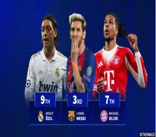 姆希塔良在這份榜單中排名第一,因?yàn)樗玫谋荣悎?chǎng)次比上述兩位巴薩傳奇更少。