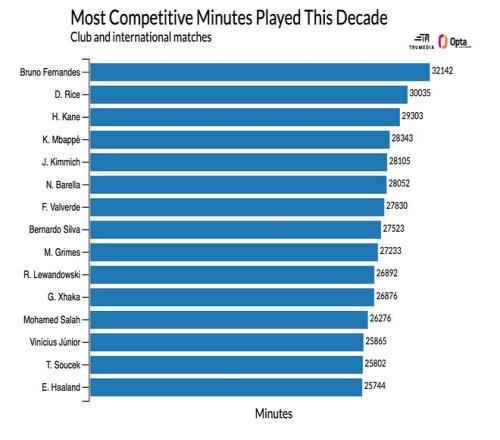 曼聯(lián)場(chǎng)上場(chǎng)下完全是兩支球隊(duì):他在場(chǎng)凈勝17球,不在場(chǎng)凈負(fù)1球。從2020年1月算起,他進(jìn)球70個(gè)、助攻67次、創(chuàng)造638次機(jī)會(huì),隊(duì)內(nèi)第二名的數(shù)字分別是48、22、190。換句話(huà)說(shuō),這不是核心,這是單核。