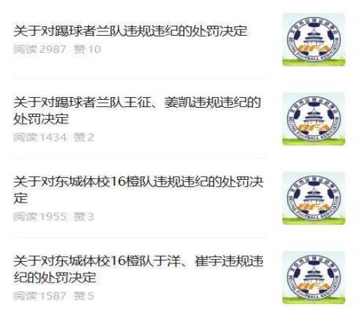 北京足協(xié):中青賽兩隊(duì)互射自家球門,取消比賽資格