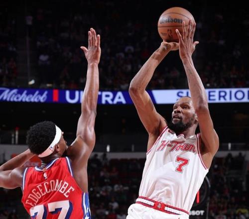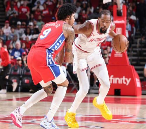 兩隊(duì)不是戰(zhàn)略對手,要到總決賽才有可能相遇。不過,兩隊(duì)都有排位壓力,火箭隊(duì)要為主場優(yōu)勢而戰(zhàn),76人隊(duì)要為直通季后賽而戰(zhàn)。也正是因?yàn)槿绱?,這場比賽的防守強(qiáng)度幾乎拉到了季后賽級(jí)別,火箭隊(duì)搶斷76人隊(duì)12次,制造76人隊(duì)16次失誤;76隊(duì)搶斷火箭隊(duì)10次,制造火箭隊(duì)15次失誤。沒有大帝,喬治8中2僅得7分,馬克西、埃奇庫姆和格萊姆斯聯(lián)手砍下64分+11籃板+13助攻,這是他們在落后28分的情況下將比分追至5分的關(guān)鍵。76人隊(duì)嚇出火箭隊(duì)一身冷汗,火箭隊(duì)拒絕28分大逆轉(zhuǎn),終究還是杜蘭特扛下了所有!