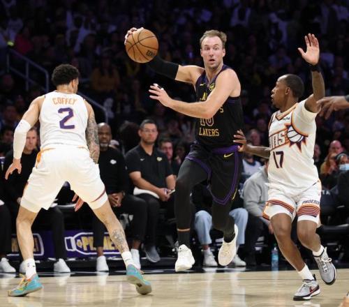 北京時間4月11日,NBA常規(guī)賽繼續(xù)火熱進行。湖人坐鎮(zhèn)主場與太陽展開對決,背靠背作戰(zhàn)的紫金軍團面臨著嚴峻的體能考驗。盧卡東契奇、里夫斯、海斯繼續(xù)傷停,斯瑪特傷愈復(fù)出擔(dān)任替補,雷迪克沿用了勒布朗詹姆斯、拉拉維亞、肯納德、八村塁與艾頓的首發(fā)五虎。暫列西部第4的湖人,依舊致力于沖擊前3。菲尼克斯已經(jīng)鎖定西部第7,德文布克、杰倫格林、古德溫3大主要輪換傷停,太陽隊的首發(fā)五虎調(diào)整為格雷森阿倫、狄龍布魯克斯、鄧恩、吉萊斯皮與馬克威廉姆斯。