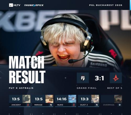 體育播報(bào)4月11日宣 PGL布加勒斯特決賽,F(xiàn)UT以碾壓之勢(shì)3-1戰(zhàn)勝Astralis,勇奪隊(duì)史首個(gè)大賽冠軍!