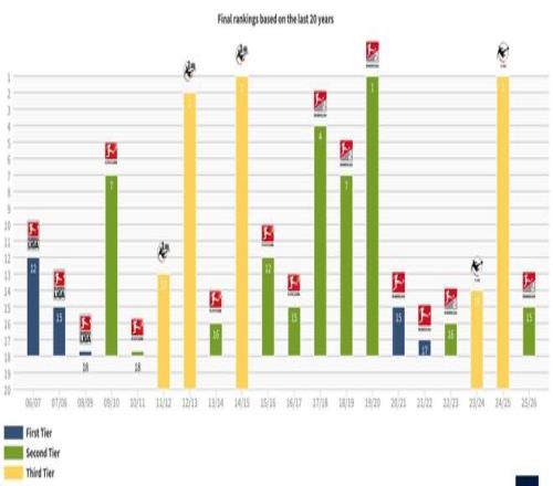 相比豪門,保級(jí)專業(yè)戶對(duì)于降級(jí)更能從容面對(duì)。作為德國(guó)足壇著名的“升降機(jī)”,比勒費(fèi)爾德在德國(guó)足壇歷經(jīng)升降級(jí)10多次,近20年間他們就從德甲到德丙中沉浮9次。2020-2021賽季他們升入德甲,在賽季開始前,俱樂部的體育主管阿拉比就表示:“我們不會(huì)冒任何經(jīng)濟(jì)上的風(fēng)險(xiǎn),我們也不想負(fù)債。我們下賽季的德甲預(yù)算會(huì)明顯低于漢堡、紐倫堡、漢諾威等德乙球隊(duì)的預(yù)算?!?/strong>