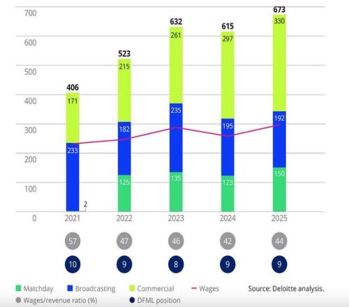 熱刺的各方面收入和他們能否參加歐戰(zhàn)有著直接關(guān)系,22-23賽季他們征戰(zhàn)歐冠,轉(zhuǎn)播方面的收入為近五個(gè)賽季最高;24-25賽季他們通過歐聯(lián)杯冠軍資格打進(jìn)歐冠,商業(yè)方面的收入又為近五個(gè)賽季最高。