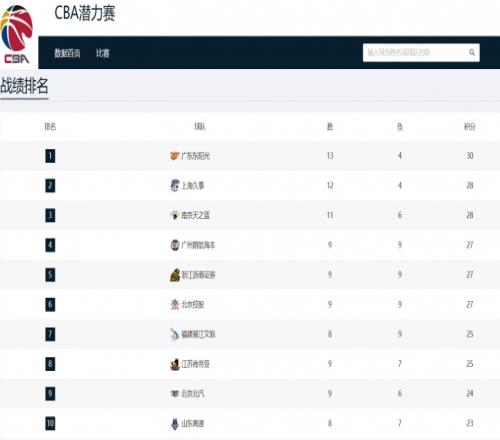 潛力賽排名:廣廈還剩1場(chǎng)目前取得9勝 ;上海還剩3場(chǎng),已取得12勝