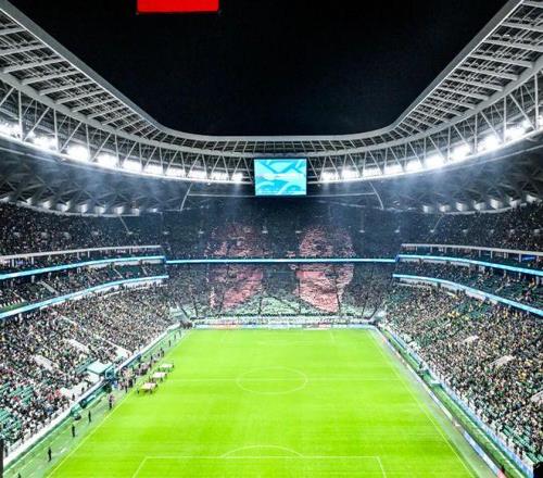比賽開(kāi)始之前,球迷們組成了張玉寧和法比奧的主題Tifo,翻轉(zhuǎn)畫(huà)面后呈現(xiàn)為雙人射門(mén)的壯觀效果。