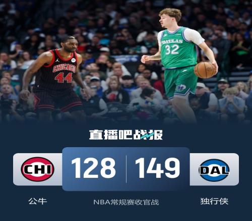 比賽開始,獨行俠率先發(fā)力,打出16-0的攻擊波確立優(yōu)勢,公牛內(nèi)外開花苦苦追趕,弗拉格因崴腳退賽,提前結(jié)束了本賽季,次節(jié)獨行俠命中率下降,克萊挺身而出獨中4記三分帶隊牢牢占據(jù)場上主動,半場戰(zhàn)罷獨行俠80-56領(lǐng)先公牛。易邊再戰(zhàn),獨行俠火力不減,內(nèi)姆哈德穿針引線連送助攻,幫助球隊將分差拉開到30分,末節(jié)獨行俠穩(wěn)扎穩(wěn)打保持優(yōu)勢,公牛無心戀戰(zhàn)。最終,獨行俠149-128擊退公牛,勝利收官。