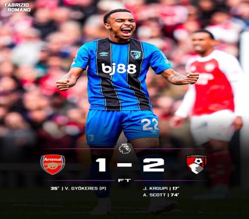 阿森納這賽季像個提前交卷的學生,現(xiàn)在發(fā)現(xiàn)后面還有人能改答案。第32輪主場1-2輸給伯恩茅斯,積分榜上領先曼城9分,但人家手里還攥著兩場沒踢。換句話說,這個"領先優(yōu)勢"約等于一張可能兌現(xiàn)不了的支票。