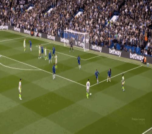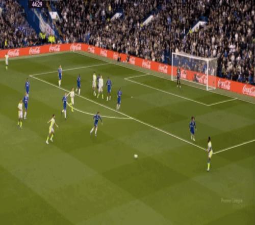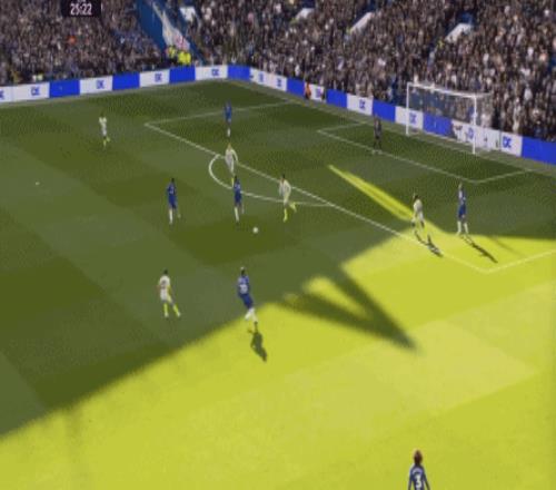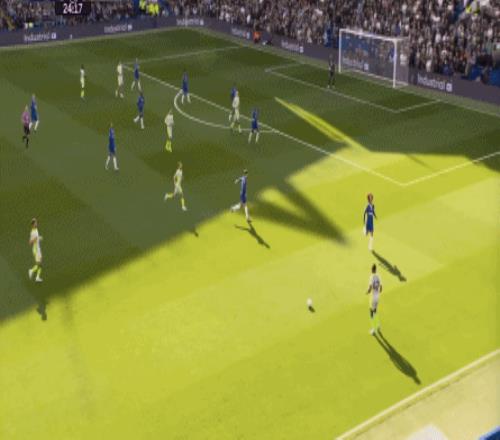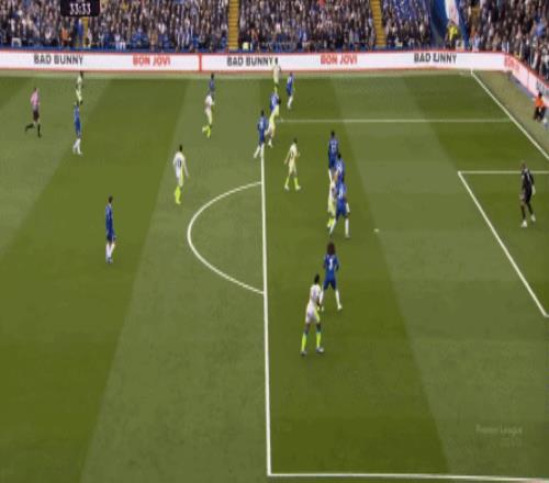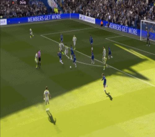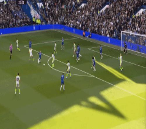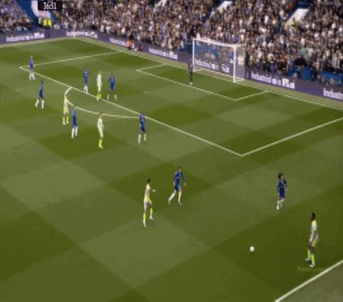 這種情況下,帕爾默和若昂-佩德羅又不能直接從中路打出進(jìn)攻,也就不能吸引防守重心,從而給邊路制造出更大的空間,所以在上半場后半段,切爾西的威脅進(jìn)攻就變得很少了,這次帕爾默在中路實際失誤,但錯進(jìn)錯出形成的傳中,就是為數(shù)不多的機會了: