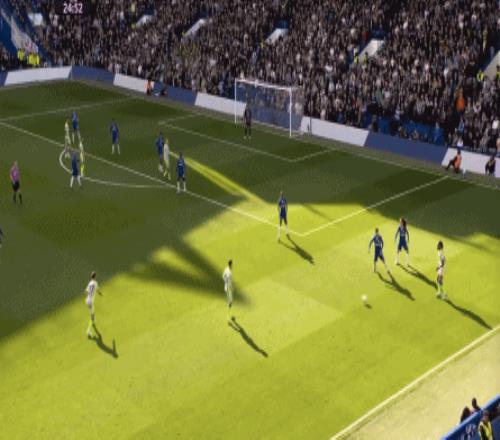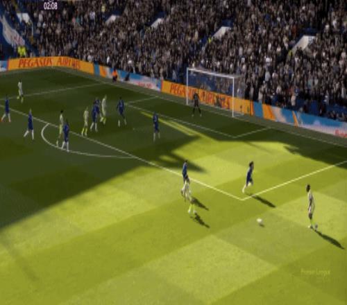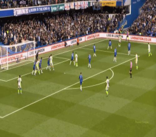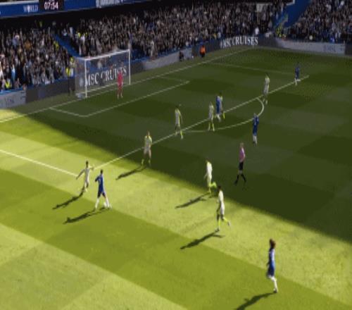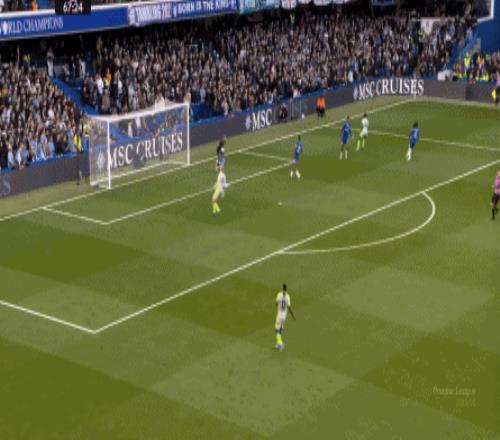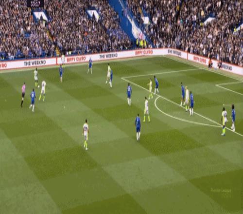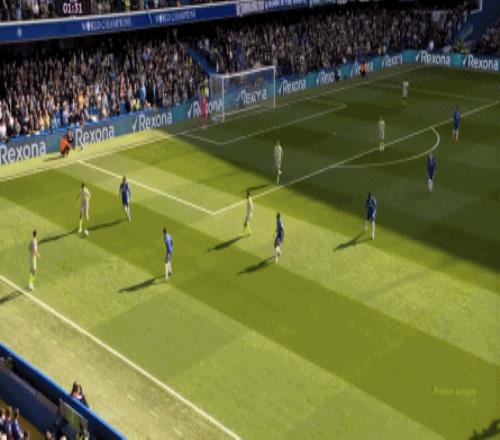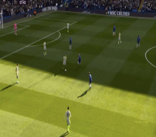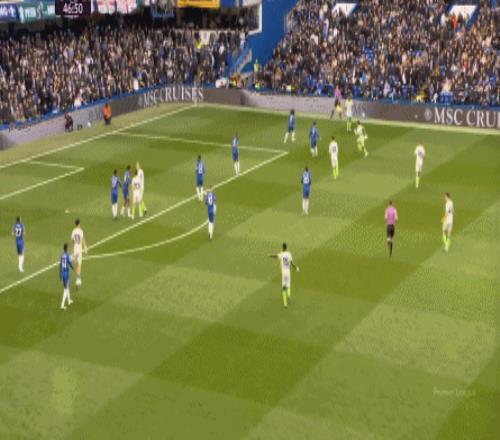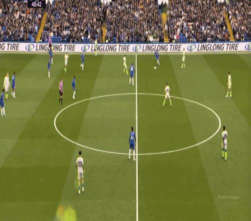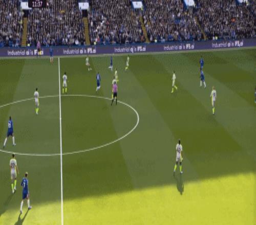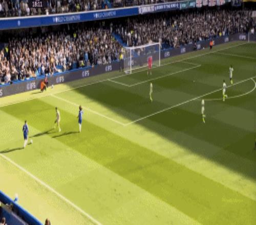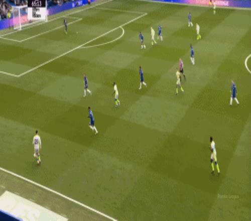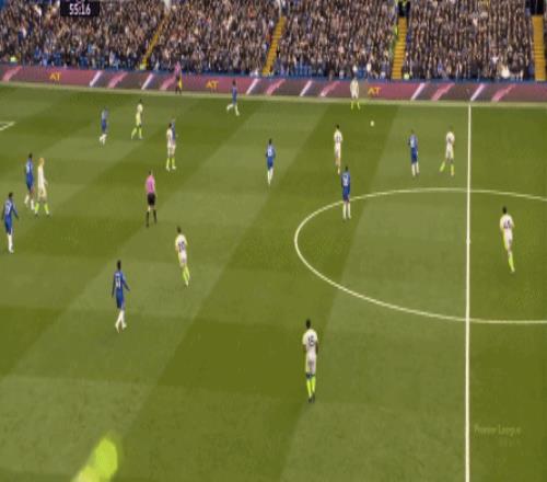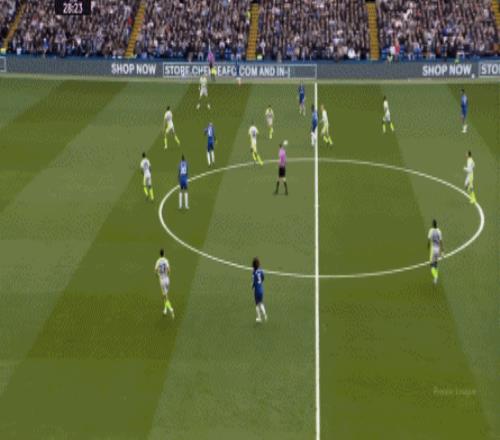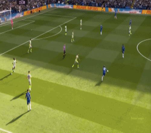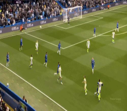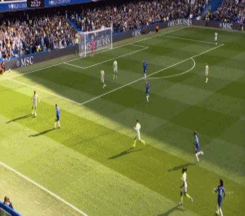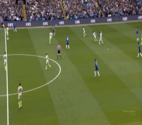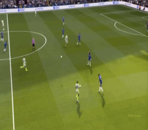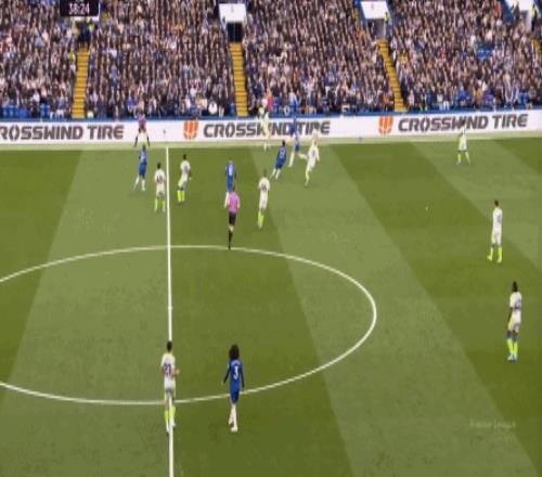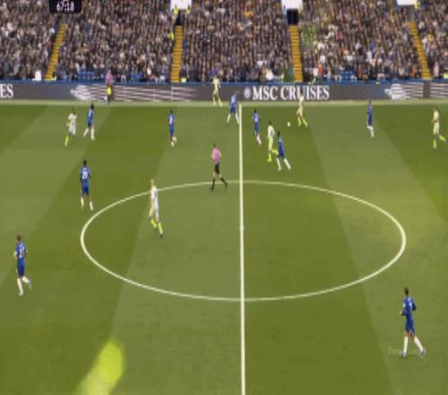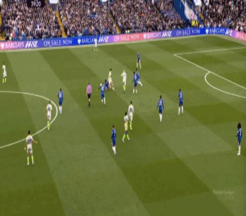 丟球了,切爾西在主場總該有些變化了吧,你不能說沒有,這體現(xiàn)在他們的前場逼搶力度稍有提高,但并沒有提高到足以干擾曼城后場球員起腳質(zhì)量的高度,所以曼城反而打出了兩次不錯的打身后,這就把切爾西又給打回去了: