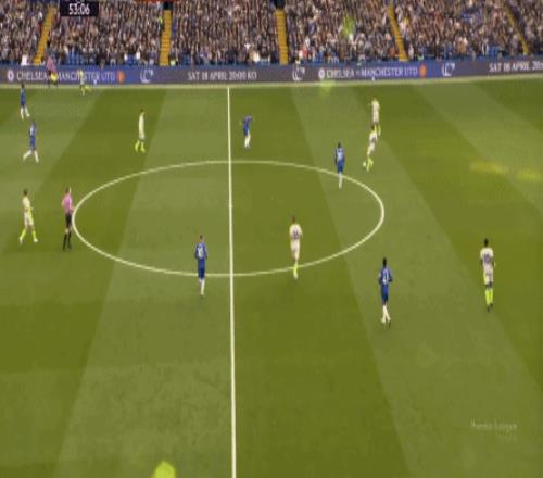 四中場變?nèi)袌?,對于球和中場的控制力本身就會有所下降,雖然你可以用兩個邊鋒的速度元素和由此形成的進(jìn)攻銳度來進(jìn)行彌補,但切爾西的兩個邊鋒并不具備在曼城身上直接打出進(jìn)攻的能力,所以尤其需要中路球員快速的左右銜接。