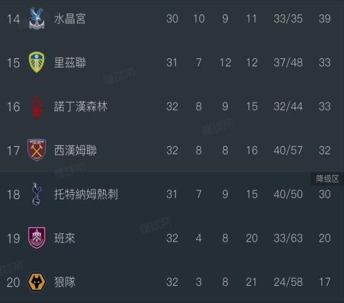 球隊換帥如走馬燈,弗蘭克下課,圖多爾救火 7 場僅拿 1 分,最終黯然離任,新帥德澤爾比首秀連遭開門黑(熱刺真不該在要拼命的時候找德澤爾比,他需要時間,即戰(zhàn)教練應該找肖恩,找拉涅利)。如今熱刺 32 輪積 30 分排名第 18,剩余 6 輪,主場對陣布萊頓、客場挑戰(zhàn)墊底狼隊、客戰(zhàn)強敵維拉、主場迎戰(zhàn)保級對手利茲聯(lián)、客場死磕切爾西、收官戰(zhàn)對陣埃弗頓,場場都是生死戰(zhàn)。