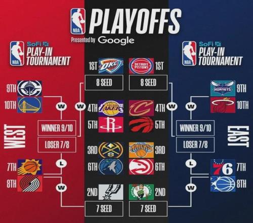 附加賽規(guī)則為第七與第八打一場(chǎng),勝者以7號(hào)種子身份晉級(jí)季后賽;輸家,和第九與第十之間的勝者再打一場(chǎng)附加賽,從而爭(zhēng)奪8號(hào)種子季后賽希望。