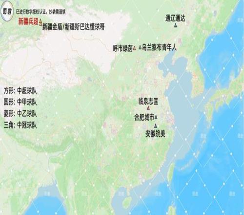 江蘇的11隊(duì)來(lái)自8個(gè)設(shè)區(qū)的市,但沒(méi)有任何一個(gè)市的球隊(duì)超過(guò)兩隊(duì),呈現(xiàn)出“去中心化”的特征,而且江蘇總共只有13個(gè)市,超過(guò)一半以上的市都有征戰(zhàn)于中國(guó)前四級(jí)聯(lián)賽的球隊(duì),普及率相當(dāng)高。