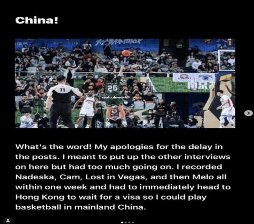 我在一周內(nèi)錄制Nadeska、Cam、LostinVegas以及Melo的訪談內(nèi)容,隨后不得不立即趕赴中國香港等待簽證,以便能夠在中國內(nèi)地進行籃球比賽。