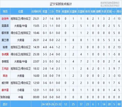 全場(chǎng)數(shù)據(jù)看得明明白白:遼籃這邊哈維13分3籃板、萊迪13分3籃板,趙繼偉13分1籃板6助攻2搶斷,李虎翼8分,王嵐嵚7分2籃板6助攻2搶斷,莫蘭德6分8籃板,威爾斯6分2籃板3助攻,吳昌澤5分5籃板,姜宇星5分,李曉旭4分7籃板2助攻,鄢手騏1籃板。