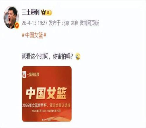 北京時間4月13日消息,中國籃球協(xié)會于4月13日晚上正式公布新一期國家女籃集訓(xùn)名單,標志著2026年國際籃聯(lián)女籃世界杯與亞運會備戰(zhàn)工作全面啟動。本次集訓(xùn)從4月15日啟動,持續(xù)至9月26日,歷時近五個月,是近年來周期最長的一次系統(tǒng)性集訓(xùn),旨在全面提升球隊技戰(zhàn)術(shù)協(xié)同能力、體能儲備與心理韌性,為兩大國際賽事奠定堅實基礎(chǔ)。這一超長集訓(xùn)周期引發(fā)外界熱議,媒體人“三土帶刺”直言:“就看這個時間,你害怕嗎?”——既是對高強度訓(xùn)練節(jié)奏的驚嘆,也折射出中國女籃追求卓越的極致態(tài)度。