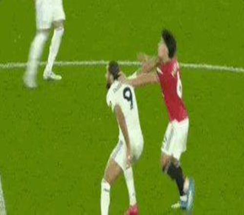利桑德羅·馬丁內(nèi)斯拉拽卡爾弗特-盧因頭發(fā),被裁判直接紅牌罰下。