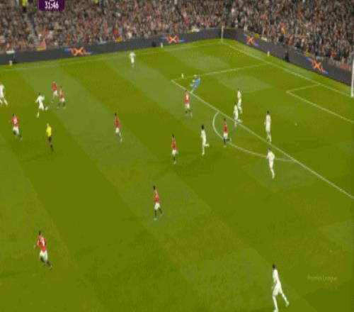 27分鐘,卡塞米羅連續(xù)失誤,讓利茲聯(lián)打出進(jìn)攻,馬茲拉維被奧卡福直接帶進(jìn)中路,進(jìn)而聯(lián)系到了弱側(cè):