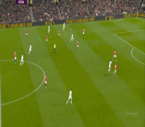點(diǎn)燃了主場(chǎng)的氣氛之后,曼聯(lián)的表現(xiàn)有了一些提振,從而打出了一段連續(xù)的轉(zhuǎn)換進(jìn)攻: