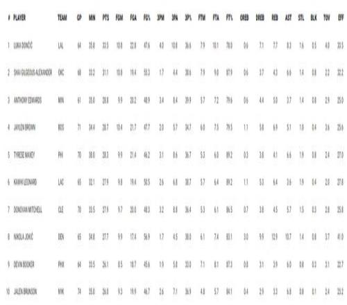 本賽季湖人后衛(wèi)盧卡-東契奇場(chǎng)均35.8分鐘,拿到33.5分7.7籃板8.3助攻1.6搶斷0.5蓋帽,命中率47.6%,三分命中率36.6%,東契奇出戰(zhàn)64場(chǎng)比賽獲得了本賽季的得分王。