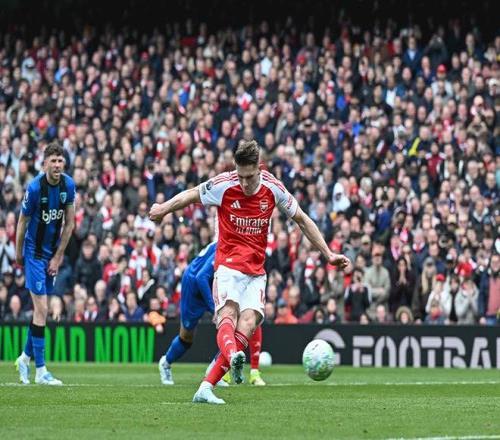 新華社照片,倫敦,2026年4月12日 4月11日,阿森納隊(duì)球員哲凱賴什點(diǎn)球破門。 當(dāng)?shù)貢r(shí)間4月11日,在2025-2026賽季英格蘭足球超級(jí)聯(lián)賽第32輪比賽中,阿森納隊(duì)主場(chǎng)1比2不敵伯恩茅斯隊(duì)。 新華社發(fā)