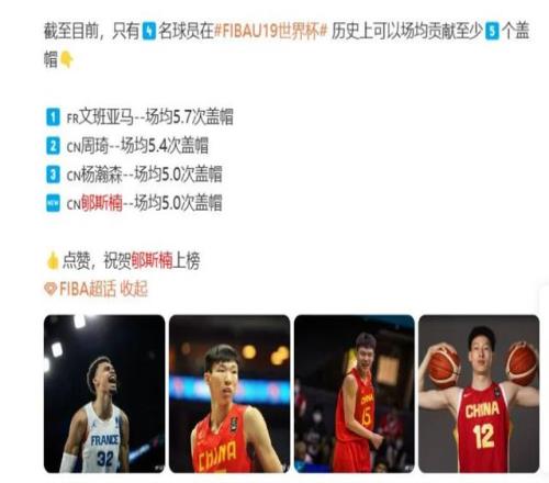 去年U19世界杯曾代表中國(guó)男籃出戰(zhàn),場(chǎng)均能夠貢獻(xiàn)11.3分4.6籃板5蓋帽;從這份數(shù)據(jù)來(lái)看,這項(xiàng)賽事至今為止只有四人能交出場(chǎng)均5記蓋帽,除了郇斯楠之外,另外三人分別是文班亞馬、楊瀚森、周琦,而這三人全都通過(guò)選秀順利進(jìn)入了NBA。
