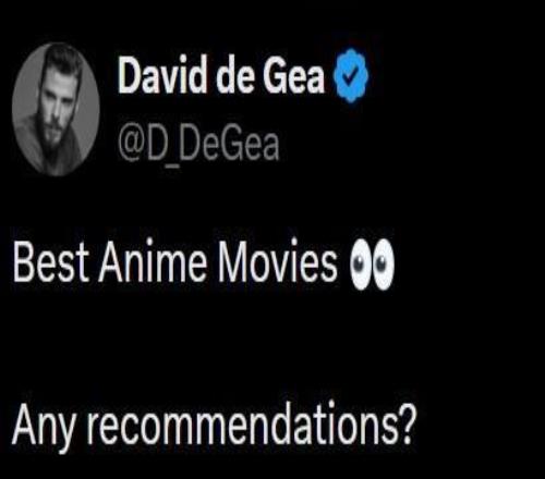 德赫亞在個(gè)人社交媒體發(fā)文,向網(wǎng)友征求最佳動(dòng)漫電影推薦。該動(dòng)態(tài)發(fā)布后收到大量回復(fù),其中《千與千尋》《火影忍者》及《鬼滅之刃》等作品被頻繁提及。