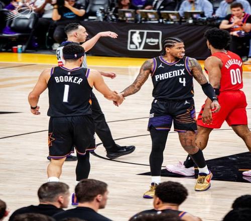 上賽季坐擁三巨頭核心陣容的菲尼克斯太陽,沒有能夠闖入季后賽,淪為了全聯(lián)盟的笑柄,球隊管理層也在休賽期痛下決心重建,選擇了杜蘭特、比爾分道揚鑣,打造了布克和杰倫格林的全新雙核體系,在二人的率領(lǐng)下,太陽常規(guī)賽戰(zhàn)罷取得了45勝37負(fù)的戰(zhàn)績,排名西部第七,獲得了一個附加賽的名額。