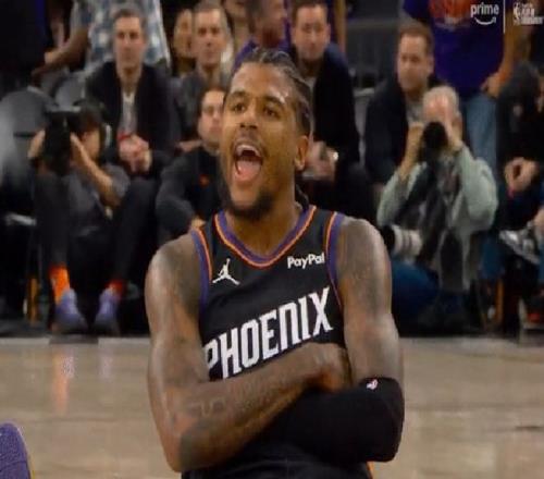 第三節(jié)杰倫格林超級大爆發(fā),單節(jié)投籃7中5獨攬13分,幫助太陽78-69領(lǐng)先勇士,以9分優(yōu)勢進入決勝局末節(jié)。