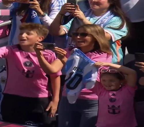 賽后,鏡頭給到本場雙響的梅西?!?/p>