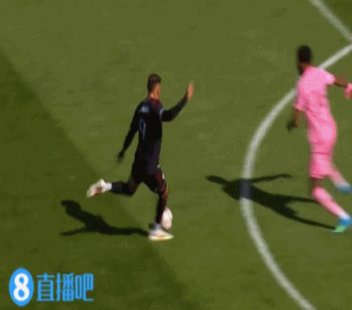 第90+2分鐘,梅西拼搶踢倒特拉維斯吃到黃牌?!?/p>
