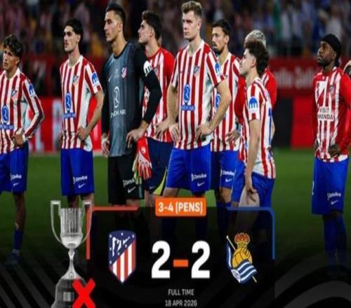 北京時(shí)間4月19日清晨,2025/26賽季西班牙國王杯決賽落下帷幕。馬德里競技與皇家社會鏖戰(zhàn)120分鐘,2比2難分高下。點(diǎn)球大戰(zhàn)中,瑟洛特、阿爾瓦雷斯失點(diǎn),最終以點(diǎn)球3比4、總比分5比6飲恨敗北。皇家社會隊(duì)史第四次捧起國王杯冠軍,而馬競則是延續(xù)近11年來,只有一座西甲冠軍獎(jiǎng)杯的尷尬。