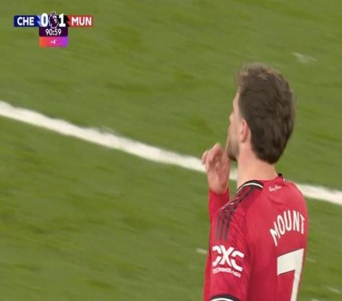 替補(bǔ)登場期間,芒特每一次觸球都遭到主場球迷的噓聲,但最終曼聯(lián)帶走三分,比賽尾聲芒特對著切爾西球迷做出噤聲手勢。