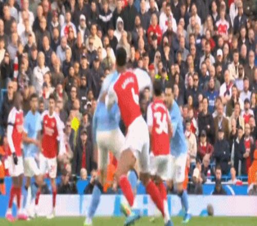 在哈蘭德破門時,加布里埃爾就在與哈蘭德的拼搶中處于下風(fēng)。隨后,加布里埃爾在與哈蘭德拼搶時互相拉住球衣,前者更是把哈蘭德的內(nèi)衣都拉破。