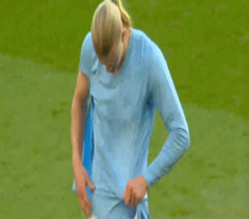 哈蘭德的球衣后背被拉破,甚至連內(nèi)衣也被拉破,球衣、內(nèi)衣幾乎成了一片破布。哈蘭德脫下內(nèi)衣扔給球迷,并且再次穿上了被撕破的球衣。