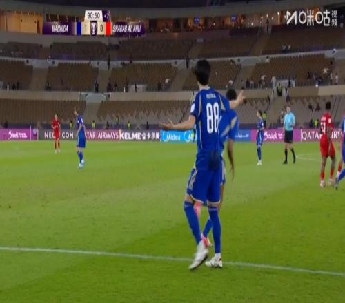 回看比賽,第91分鐘町田澤維亞換人,中村帆高下場、望月海輝登場,中村帆高完全離場前,主裁就已經(jīng)響哨,迪拜國民擲界外球發(fā)起進(jìn)攻并取得進(jìn)球??