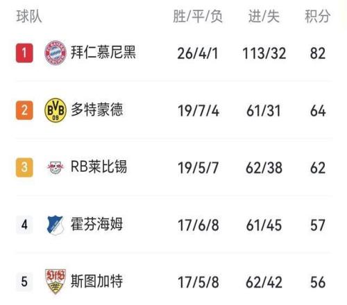 至此,拜仁繼續(xù)刷新在本賽季德甲的傲人戰(zhàn)績,31輪26勝4平1負積82分,提前奪冠的情況下,已甩開第2的多特18分之多!